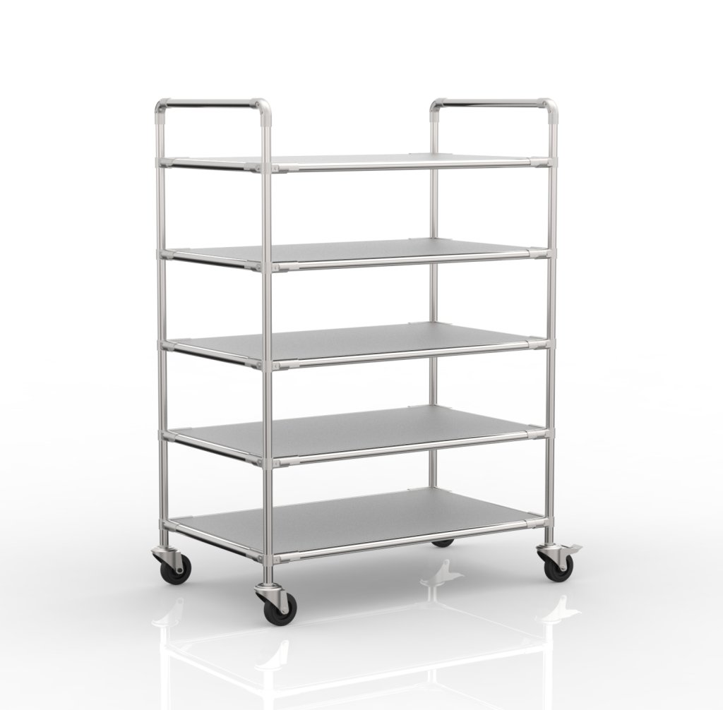The antistatic shelf cart from the tubular modular system is an ideal choice for handling goods sensitive to electrostatic discharge. The cart includes an ESD laminate board with a thickness of 18 mm. Dimensions 1530 x 1268 x 868 mm, wheel diameter 100 mm.