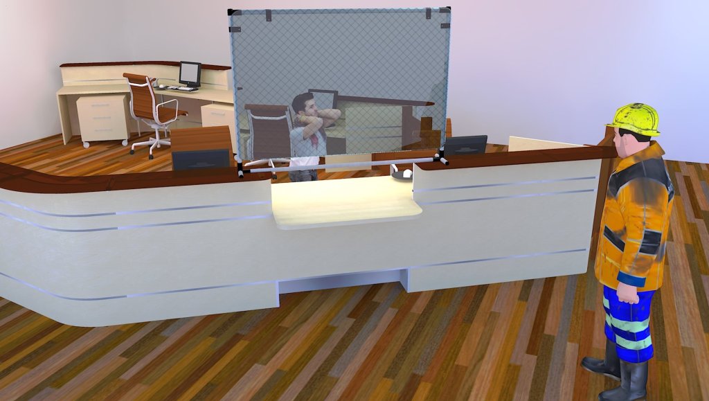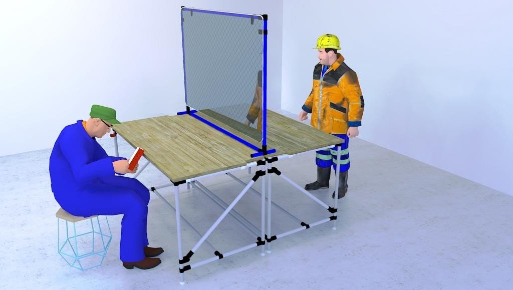 Customized disinfection stand from Logiform tubular modular system for placing disinfectant with manual or automatic dispenser. Dimensions according to the customer's wishes.