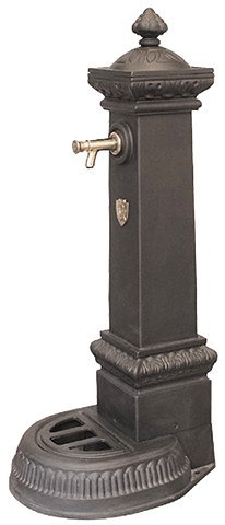 Dimensions of the base 530 x 440 mm, height 1260 mm, weight 98 kg. The drinker can be purchased alone, or bronze faucets with a wheel or lever or pressure switch can be purchased. For an additional fee, you can also purchase a drinking fountain equipped with a pump and a bronze faucet. Part of the drinker (if you order a variant with a faucet) is a pressure half-inch hose that leads from the drinker.