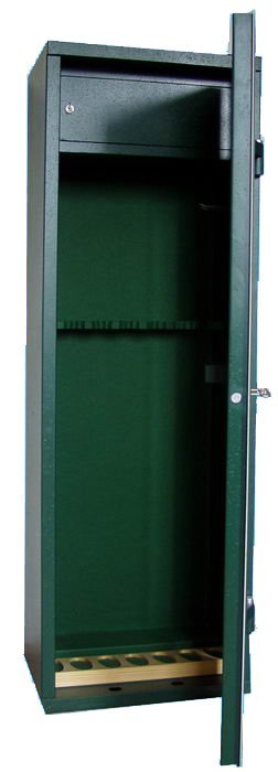 A safe for the protection of weapons and ammunition, for 7 rifles, width 500, height 1500, depth 350 mm.