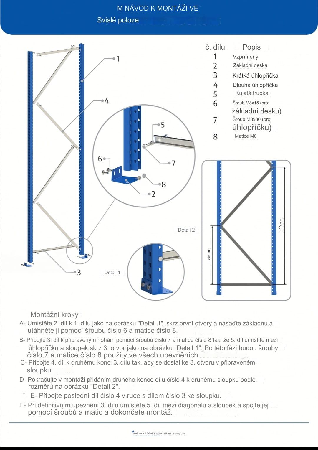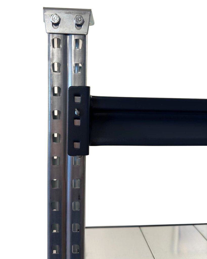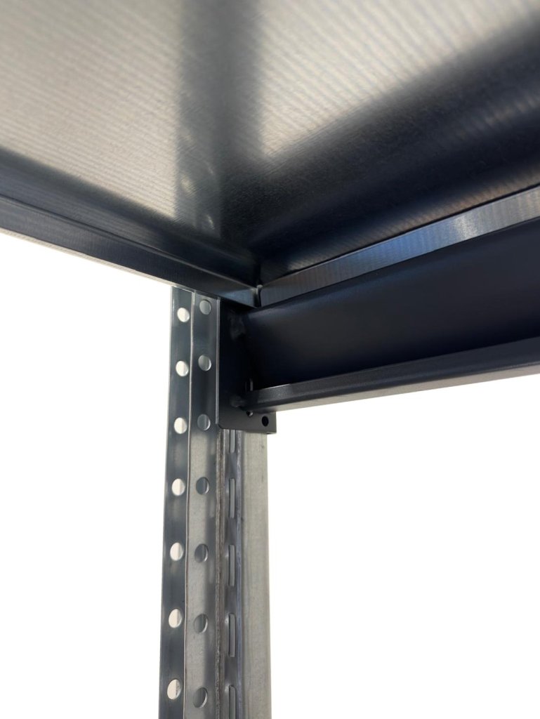 KAF add-on shelving unit designed for extending the KAF base rack unit. Possibility to add on to infinite lengths. Galvanized and painted grey RAL 7016. 4 shelves. Height 2000 mm, shelf width optional 1500/1800/2100 mm, shelf depth 500/600/800 mm. Load capacities from 400 to 560 kg.