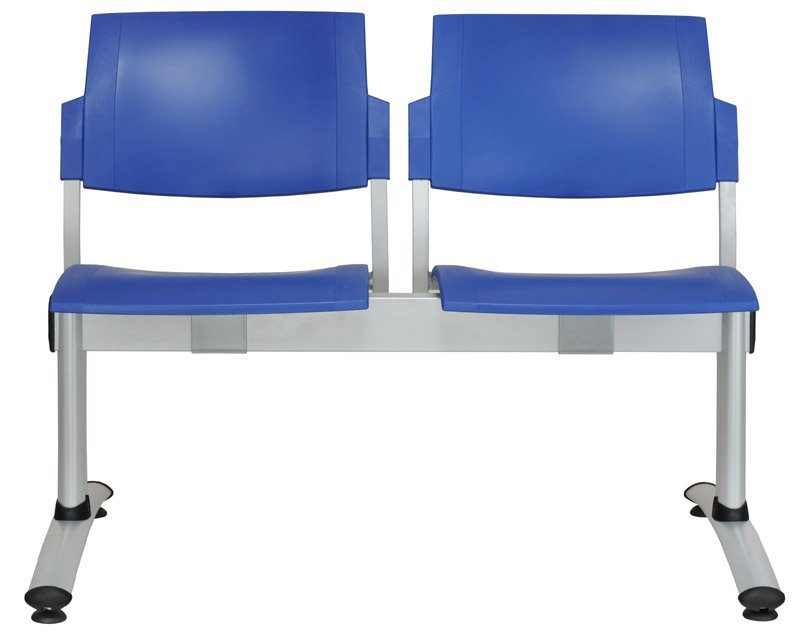 Square plastic bench. Black or gray steel frame. Possibility to replace the seat with a side table. Price without armrests.