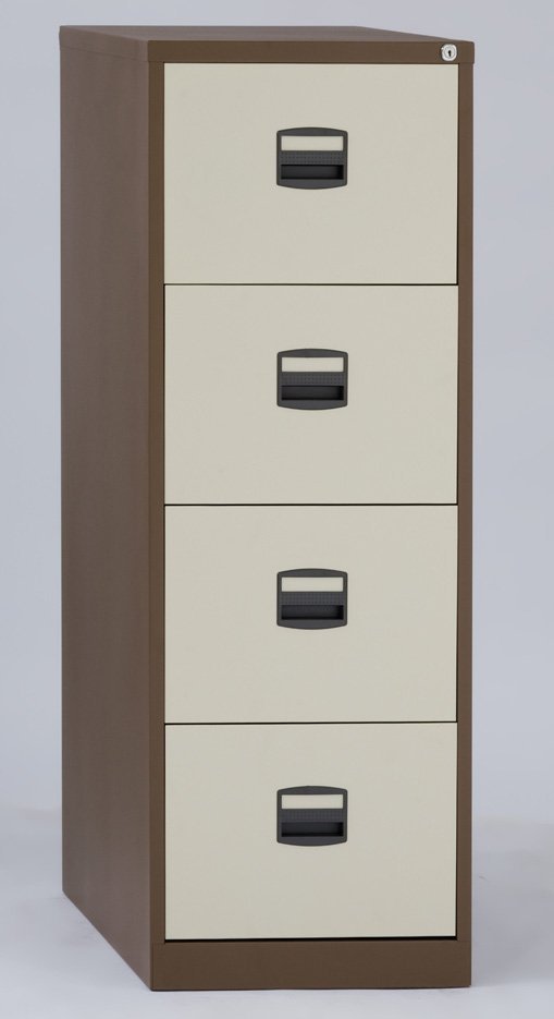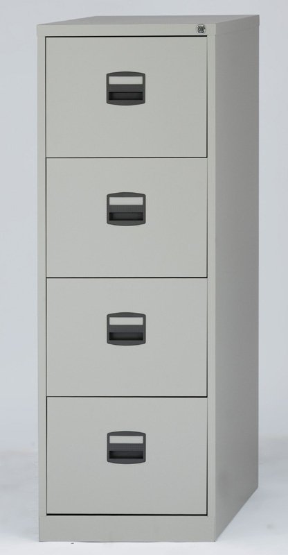 Four-drawer metal filing cabinets for documents or hanging files in A4 or Foolscap format, width 413 or 470, height 1321, depth