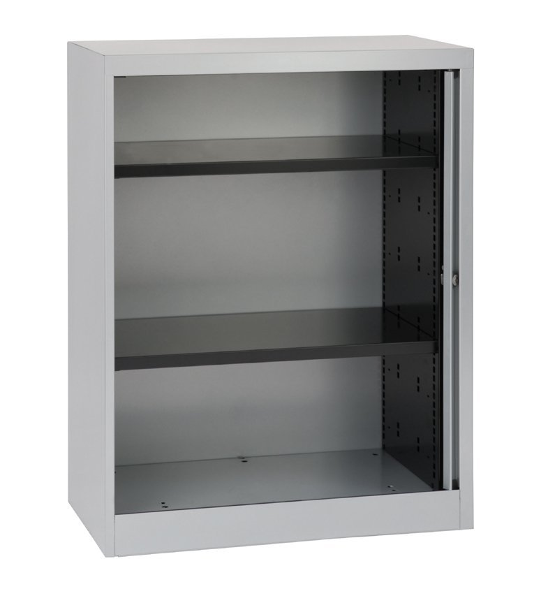 Metal cabinets with horizontal shutter with two shelves, width 800, height 1030, depth 430 mm, various colors