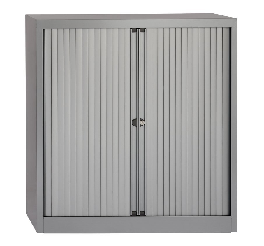 Metal cabinets with horizontal shutter with two shelves, width 1000, height 1030, depth 430 mm, various colors.