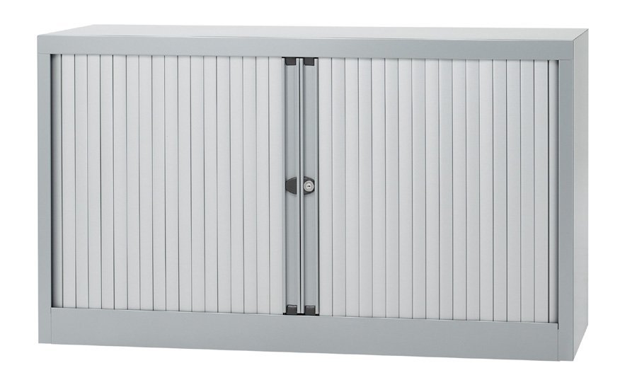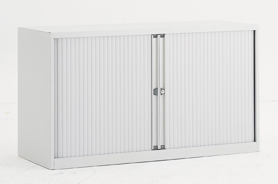 Metal cabinets with horizontal shutters with one shelf width 1200, height 695, depth 430 mm, various colors.