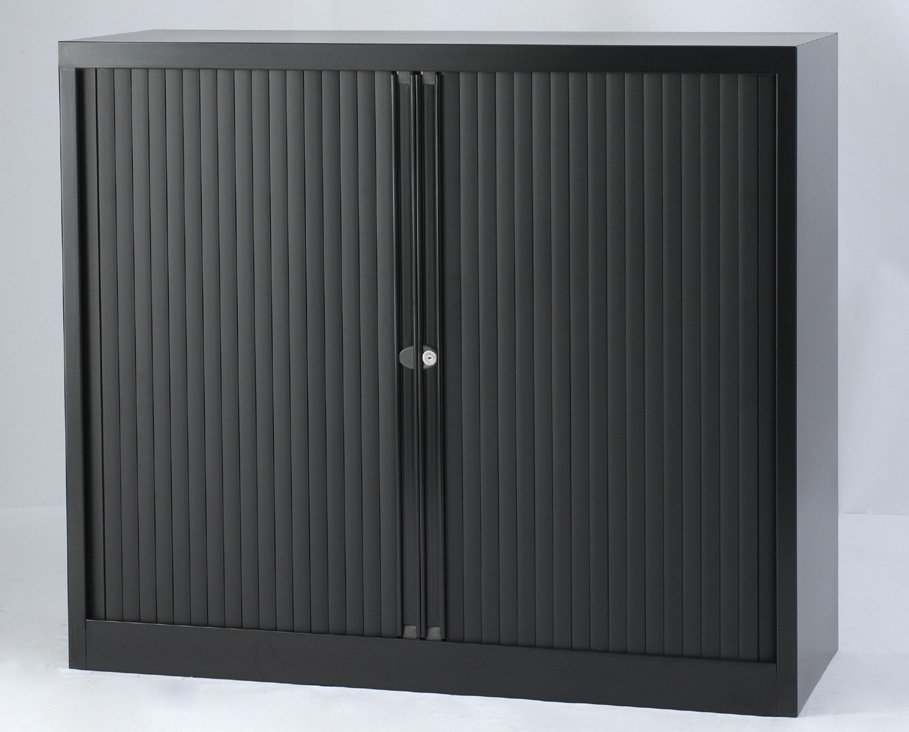 Metal cabinets with horizontal shutters with two shelves, width 1200, height 1030, depth 430 mm, various colors.