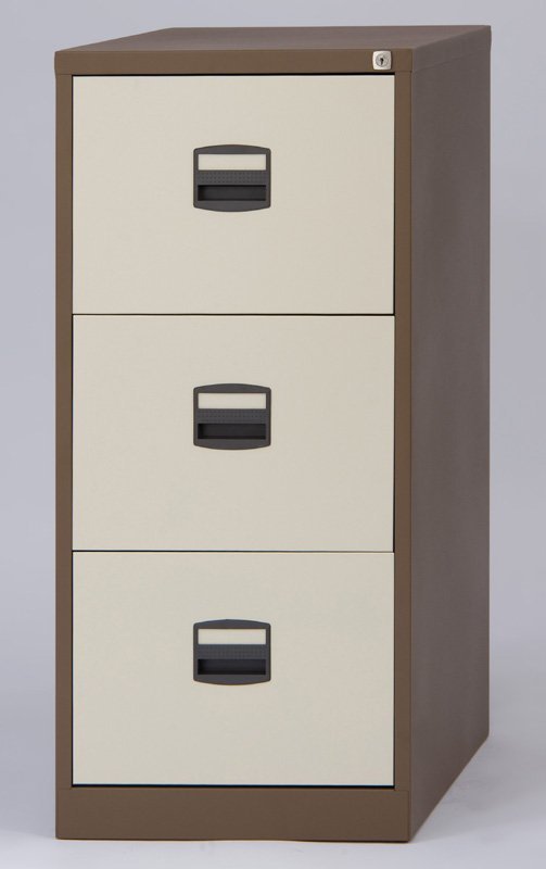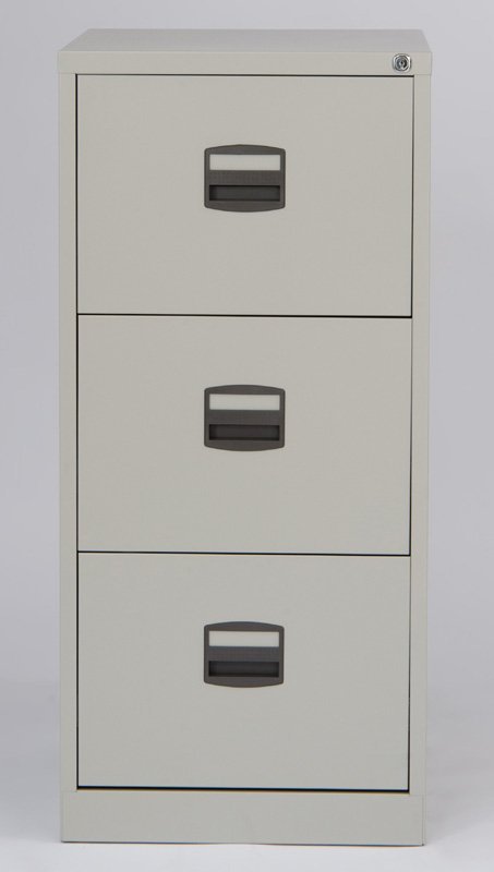 Three-drawer metal file cabinets for documents or A4 and Foolscap hanging pockets, width 413 or 470, height 1016, depth 622 mm,