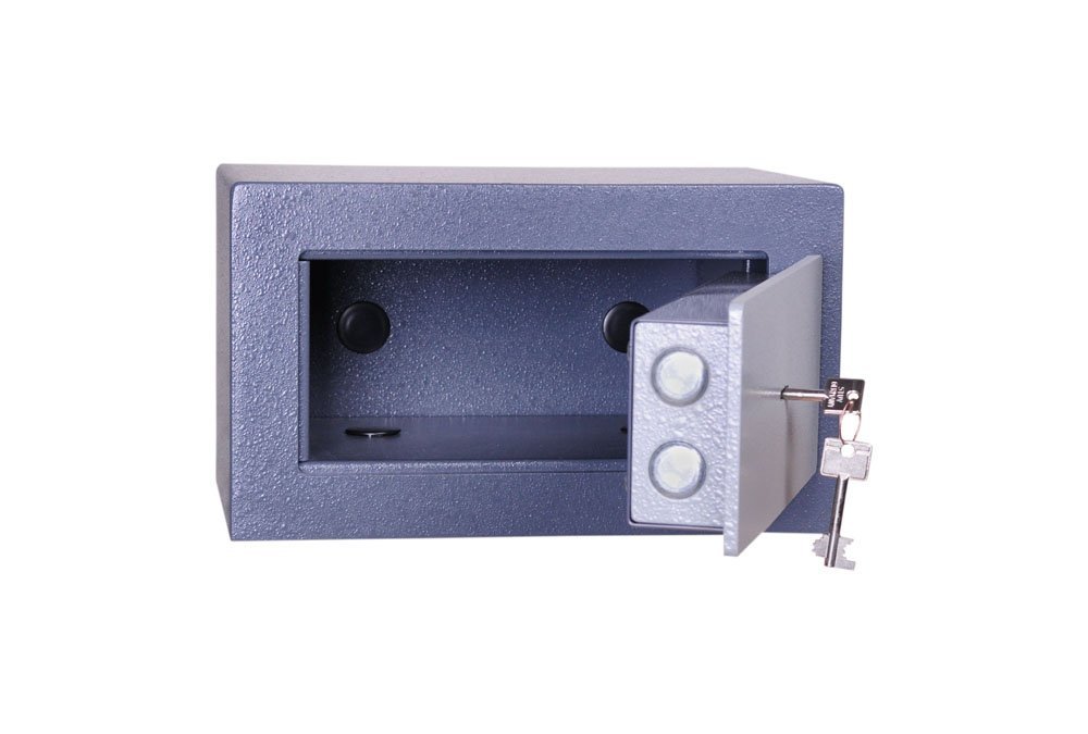 The BTB 2 safe is manufactured according to the VDMA-A standard. Body and double-skin doors. Possibility of anchoring to the wall or floor. Color dark gray RAL 7015, light gray RAL 7042. Warranty 2 years. External dimension - H 270 x W 350 x D 345 mm, internal dimension - H 190 x W 270 x D 250 mm. Weight 28 kg.
