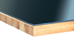 PP boards with a thickness of 15 mm are attached to a beech joint with a thickness of 25 mm, thus creating a combined board, where the beech joint ensures good physical properties and the PP board with good chemical properties. We offer PP boards in white and black.