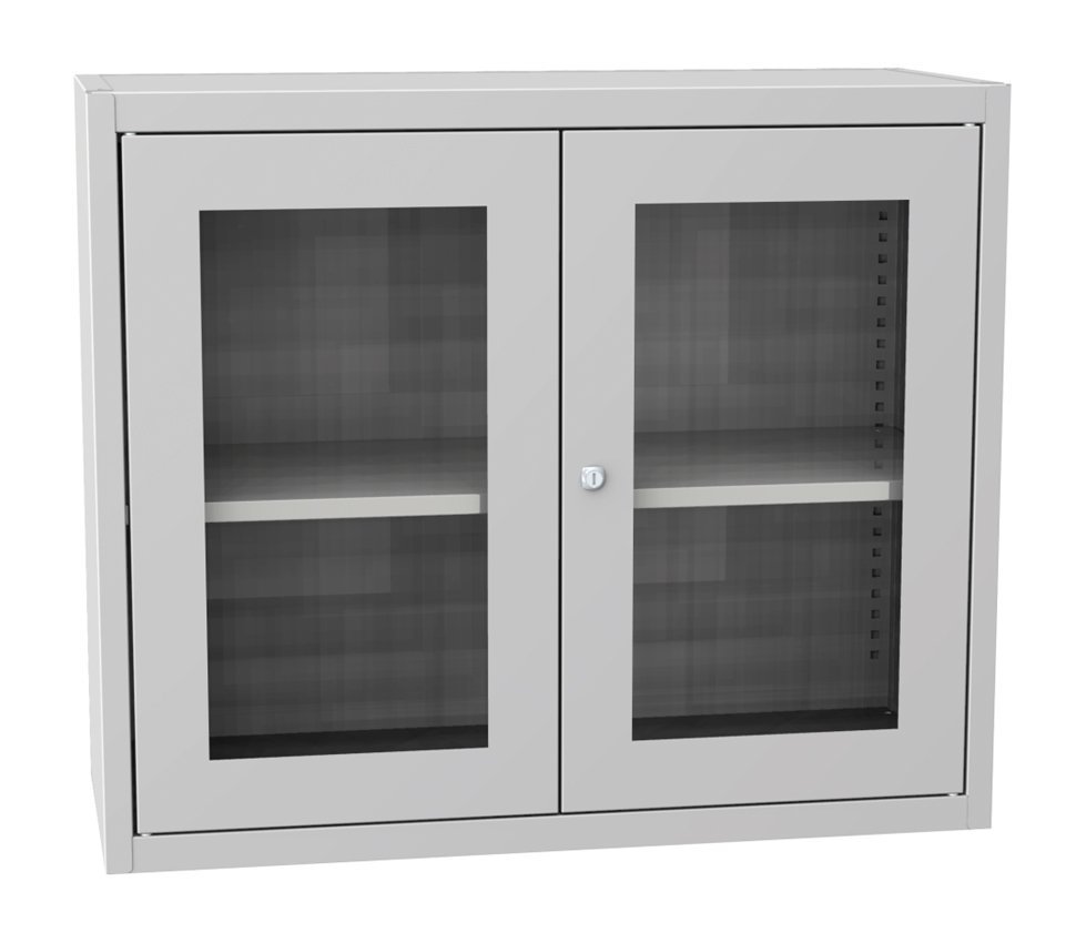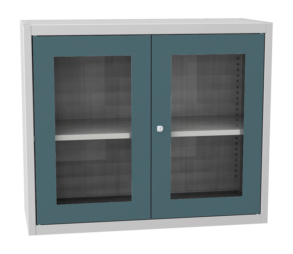 Two-door cabinet with glass door filling - extension, width 950, height 800, depth 400 mm, 1 shelf. Body color RAL 7035 light gray full description and parameters