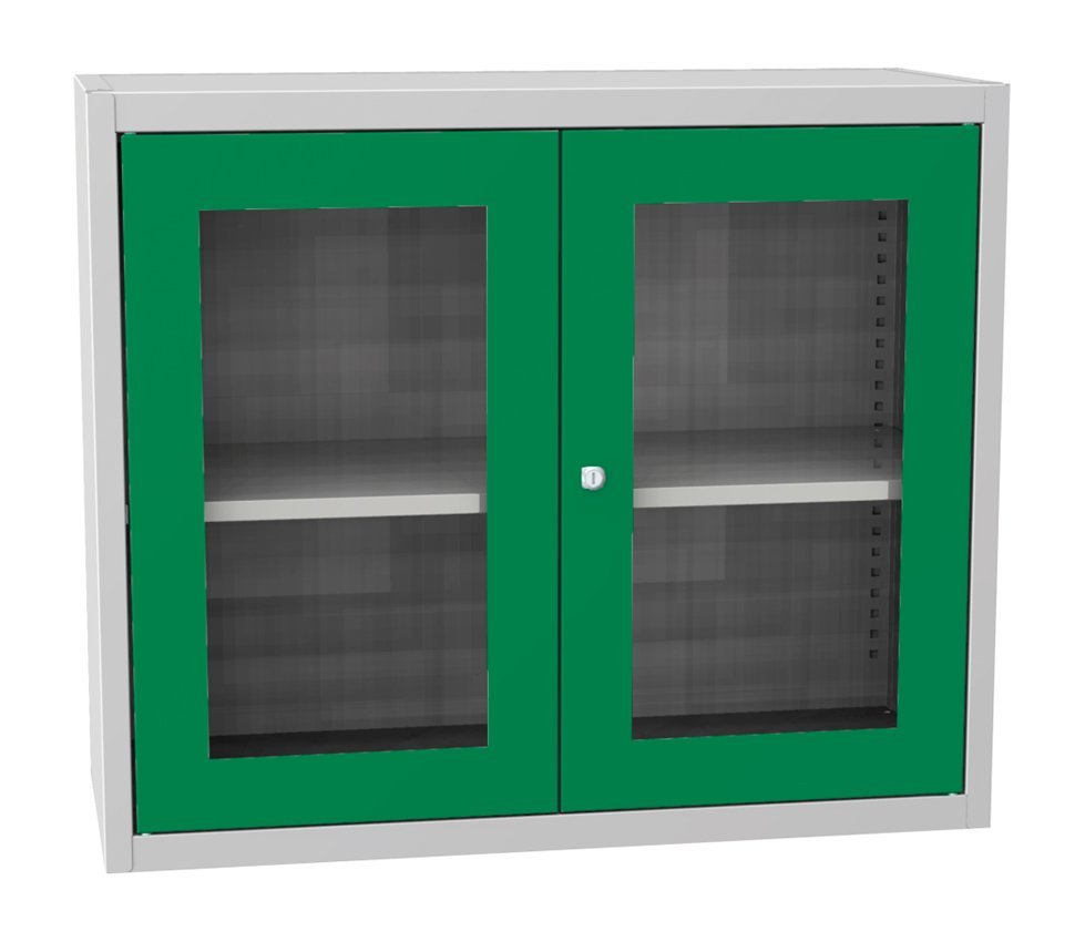 Two-door cabinet with glass door filling - extension, width 950, height 800, depth 400 mm, 1 shelf. Body color RAL 7035 light gray.
