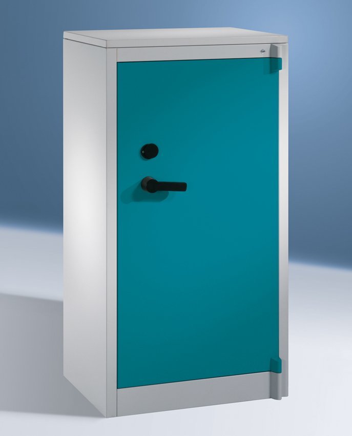 Cabinet with increased fire resistance, single door width 650, height 1226, depth 500 mm. The top plate is available in light gray full description and parameters