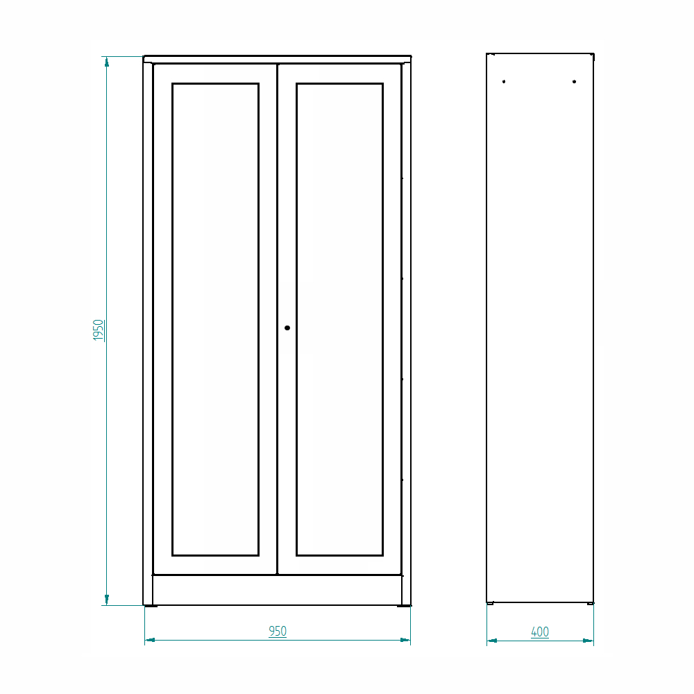 Two-door filing cabinet. Height 1950 x width 950 x depth 400 mm, 4 shelves. Wheelbase lock. Body color RAL 7035 light gray. It is full description and parameters