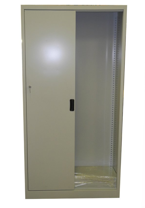 Metal cabinet with sliding doors, height 1950 x width 950 x depth 400 mm, 4 adjustable shelves. Sliding door with lock in several full description and parameters