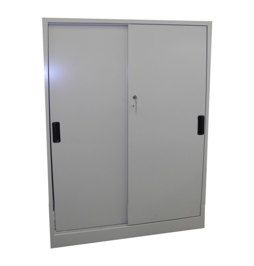 Metal cabinet with sliding doors, height 1150 x width 950 x depth 400 mm, 2 adjustable shelves. Sliding door with lock in several full description and parameters