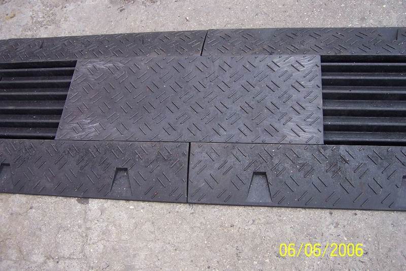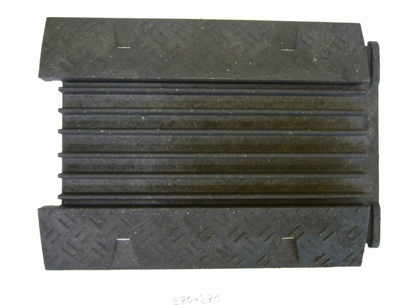 Cable bridge with insert, color black. It is used to protect cables, hoses, pipes that are laid over the road, in production facilities, exhibitions, cultural events, etc. Chemically stable, not easily flammable, easy to maintain. Quick assembly and disassembly, anti-slip and stability.