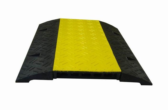 Cable bridge junction black with yellow lid. It is used to protect cables, hoses, pipes that are laid over the road, in production facilities, exhibitions, cultural events, etc. Chemically stable, not easily flammable, easy to maintain. Quick assembly and disassembly, anti-slip and stability. Warranty 2 years.