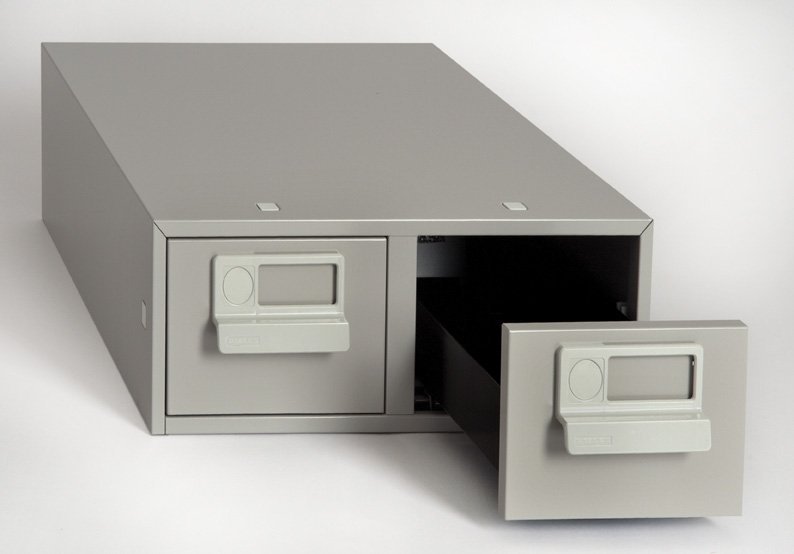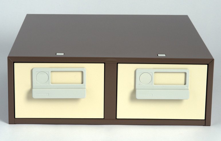 Two-drawer card filing cabinets for A7 format, width 384, height 133, depth 422 mm, cylindrical lock, various colors. full description and parameters