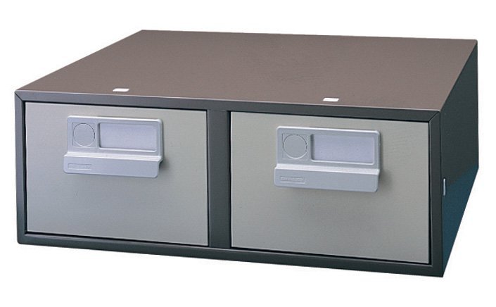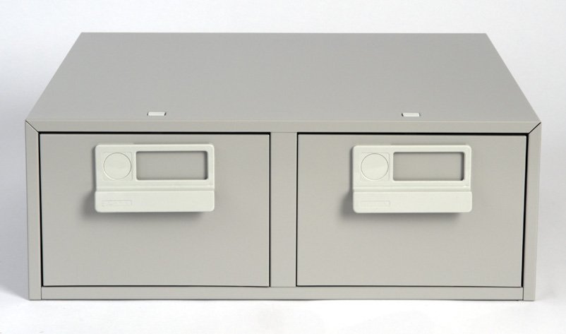 Two-drawer card filing cabinets for A6 format, width 434, height 159, depth 422 mm, cylinder lock, various colors. full description and parameters