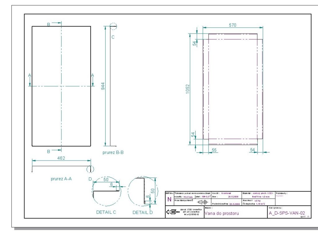Collecting tub without grate (on the bottom of the cabinet) for chemical cabinets SCH 01A and SCH 01B, load capacity 60 kg, galvanized design. Width 944 x depth 467 mm, volume 20 l.