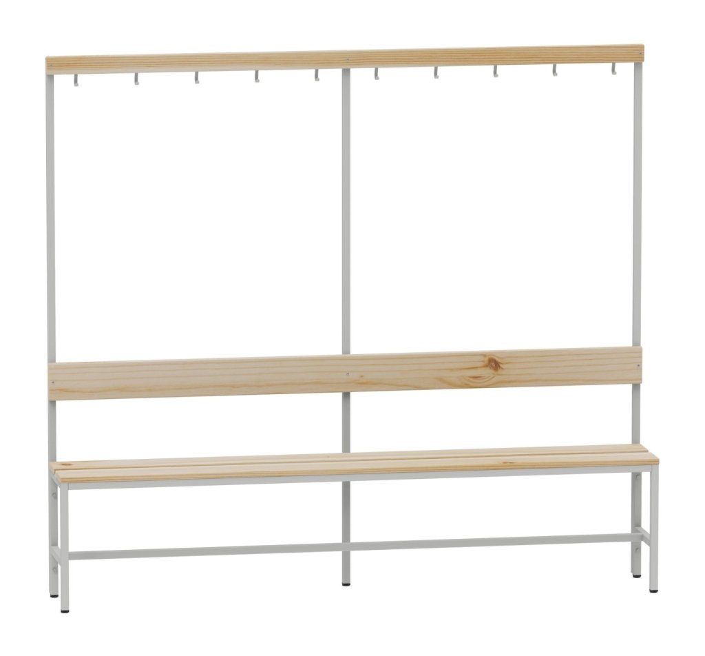 Changing room bench with hanger, one-sided width 1500 mm.