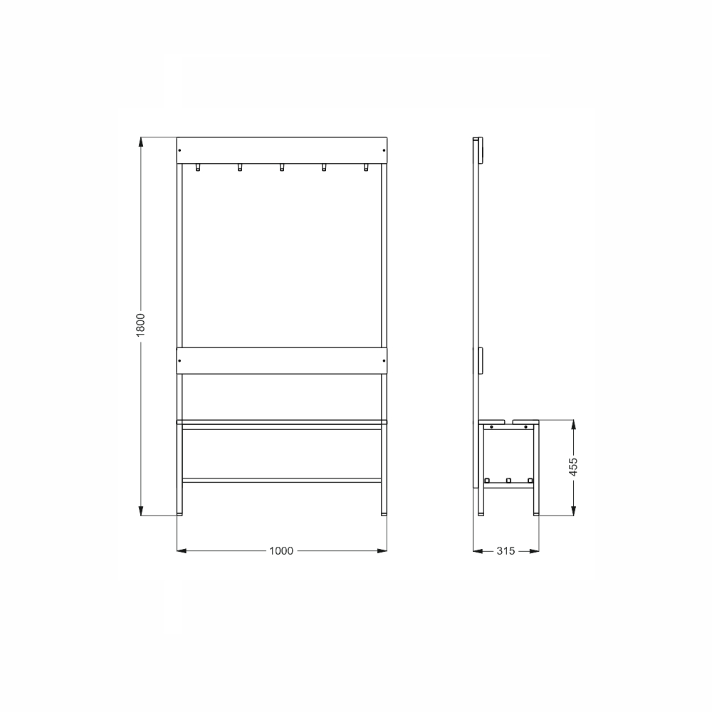 Changing room bench with hanger, one-sided width 1000 mm. full description and parameters