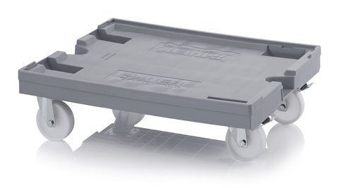 For larger loads, 800 x 600 mm transport chassis are ideal. You can use the area for several small crates or one euro crate 800 x 600 mm. Indentations on the top allow the chassis to be stacked. High quality polyamide wheels with 2 swivel steerable wheels. Dimensions in mm (H x W x D) 200 x 800 x 600. Load capacity 500 kg.