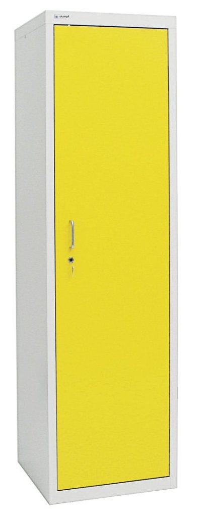Cabinet for storing chemical substances with trays for catching leaking liquids. 4x galvanized adjustable shelf (tray) with a load capacity of 100 kg. Two-point cylinder lock. Body color light gray RAL 7035, door color light gray RAL 7035, blue RAL 5010 or yellow RAL 1003. Height 1800 x width 500 x depth 500 mm.