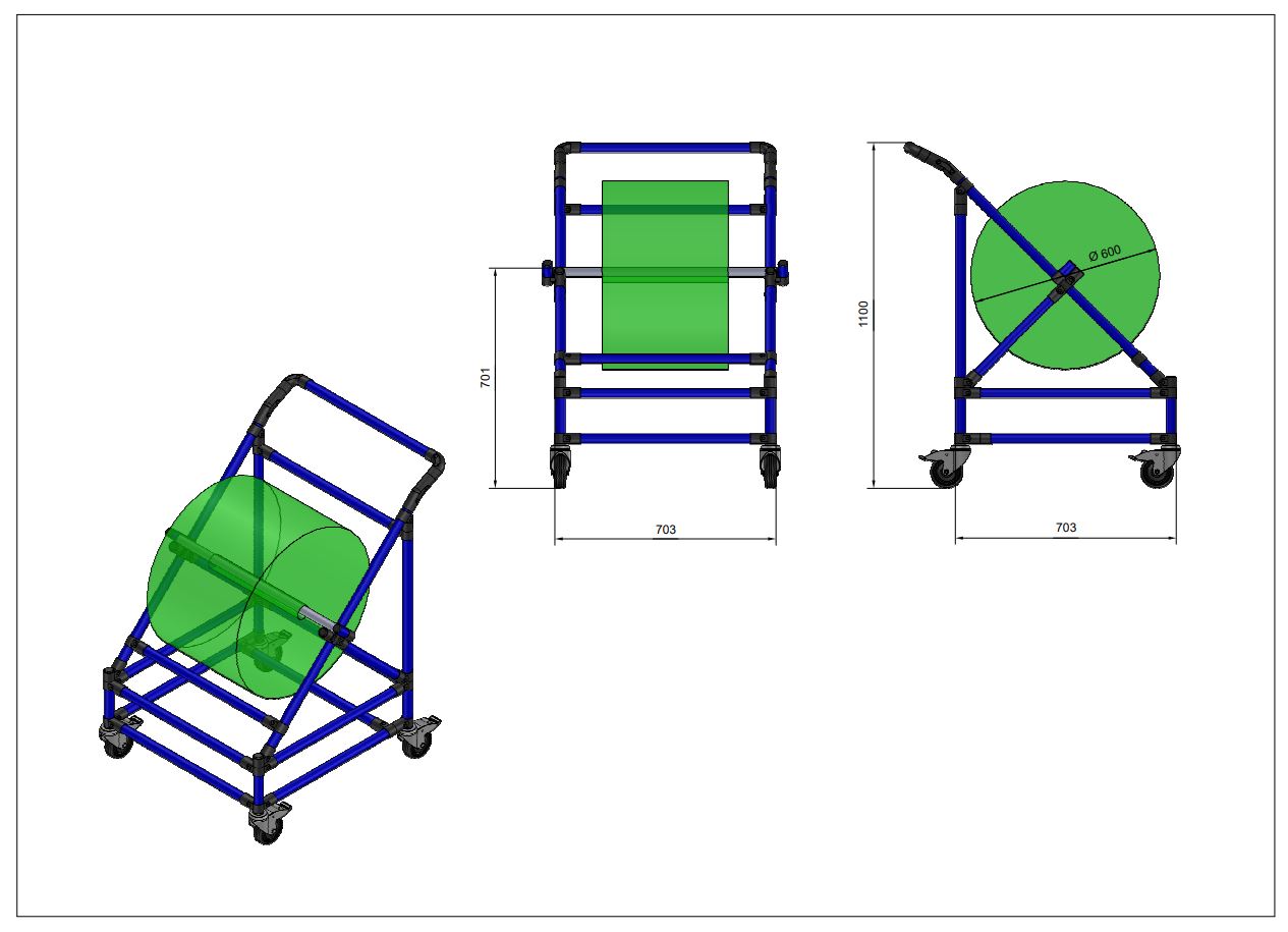 A spool trolley is a type of hand trolley that is designed for storing and transporting large spools of wire and cable. The wheels are equipped with brakes that prevent spontaneous movement when the cart is not in use. The color of the structure can be selected according to the available tubes on the website.
