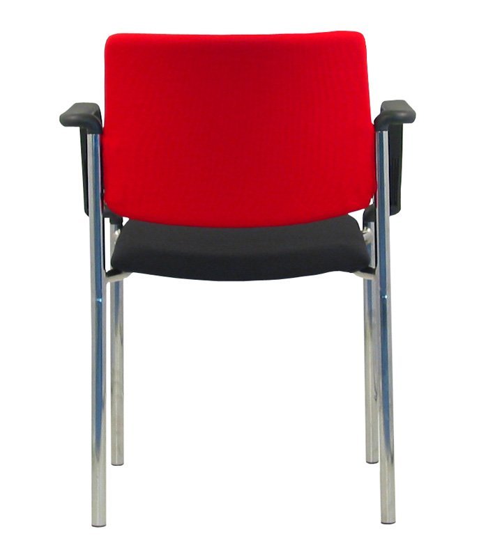 Stackable conference chair, four-legged steel frame in N1 black, N2 silver or N4 chrome, upholstered seat and backrest. The backrest is also upholstered at the back. Price including armrests.