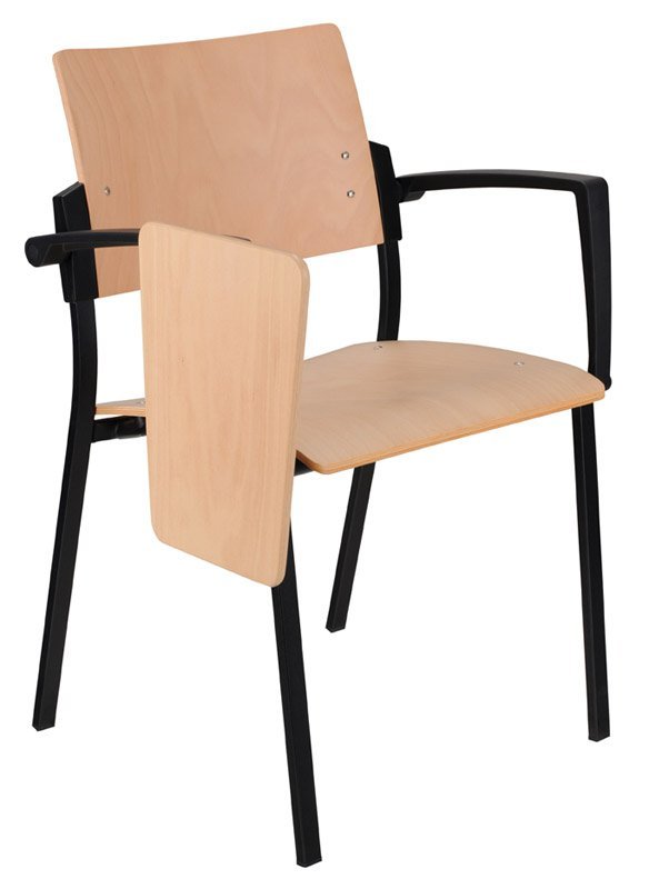 Wooden conference chair with a stable welded structure in the shade of beech, cherry, walnut or mahogany with the possibility of upholstery of the seat and backrest. Frame color black, gray or chrome. Variant with or without armrests.