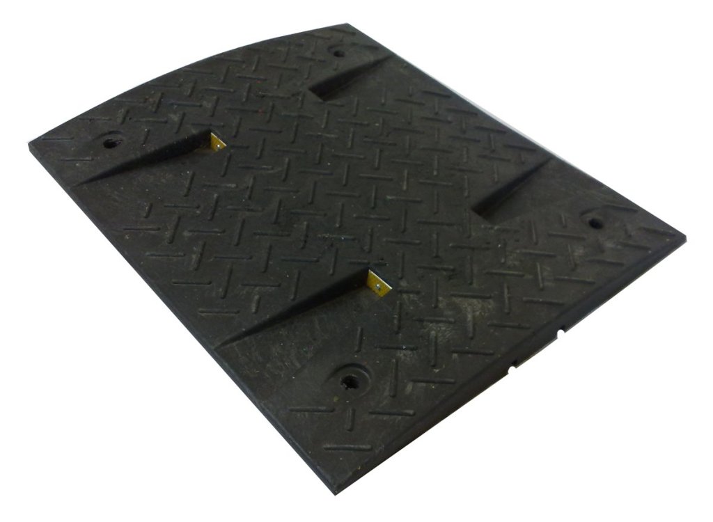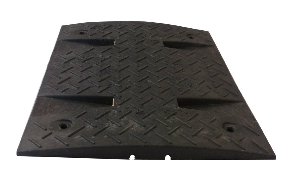 Construction-traffic equipment to reduce undesirable vehicle speeds or to comply with permitted vehicle speeds on local roads. Use – roads, parking lots, entrances to buildings. Color black, for a speed of 30 km/h. Made from a durable recycled compound. Highly visible at night. Height 30 x width 500 x depth 430 mm.