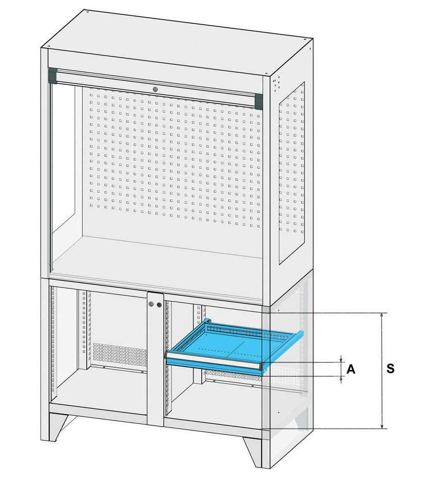 Doors with a threshold for PS modular table bodies, version with a ZAE100 or ZAT100 drawer. The technical design of the door makes it possible to change the opening of the door from right to left. Door height 500 mm. It cannot be used in cases with a chip or code lock.