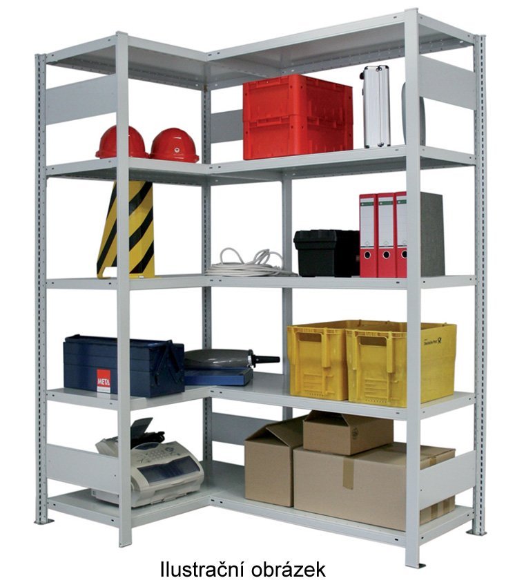 CLIP corner racks, color gray RAL 7035, shelf depth 300, 400, 500 or 600 mm, shelf width 1000 mm, height 2000 (10 shelves), 2500 (12 shelves) and 3000 mm (14 shelves), . Screwless, easy assembly. The possibility of setting the extension racks to infinite lengths (see Additional purchase). Universal right and left design.