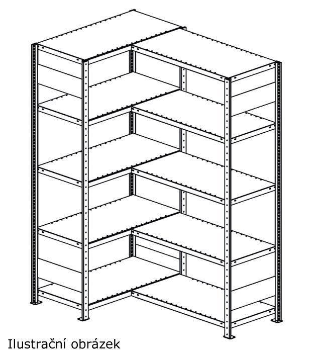 CLIP corner shelf, galvanized design, shelf depth 500 mm, shelf width 1000 mm, height 3000 mm, 14 shelves. Screwless, easy assembly. The possibility of setting the dock racks to infinite lengths (see Additional purchase). Universal right and left design.