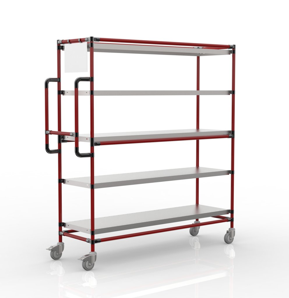 The crate trolley with five straight shelves is a practical helper for handling in manufacturing companies and logistics centers, especially in the field of e-commerce.