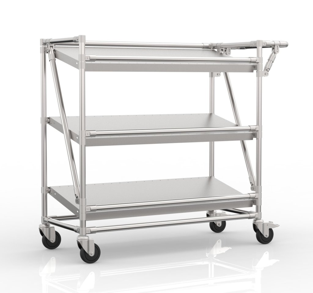 The rack trolley for crates with three slanted shelves is a practical aid for handling in manufacturing companies and logistics full description and parameters