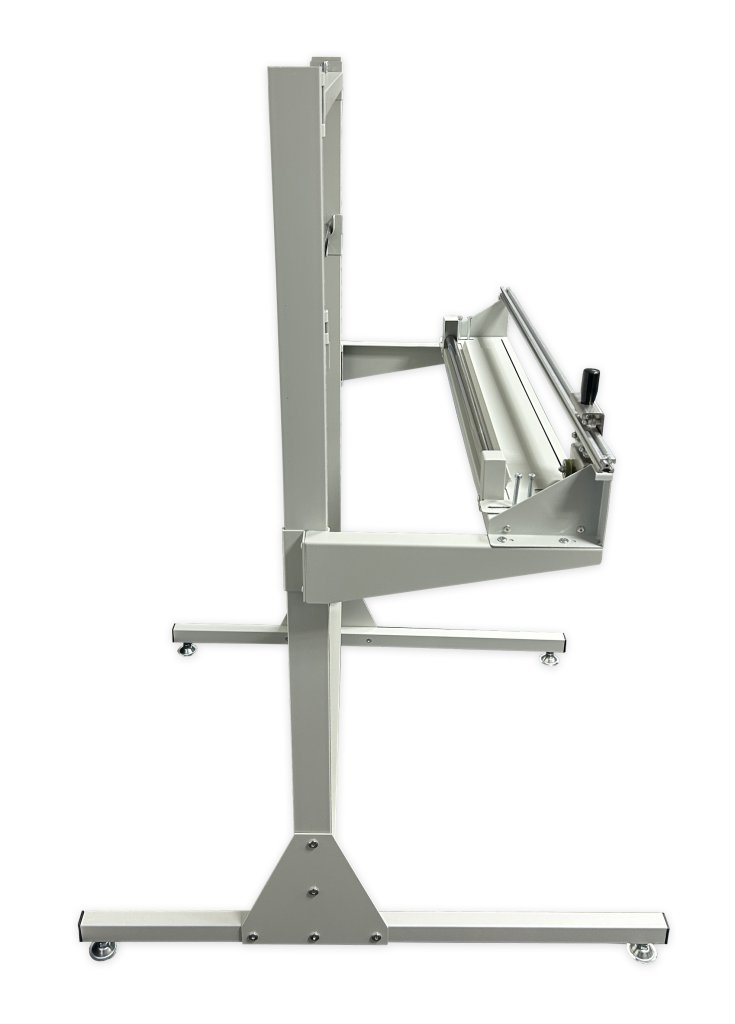 Horizontal cutting stand simple for rolled packaging materials. Dimensions height 1050 x width 950 x length 1150 mm. The color of the structure is black.