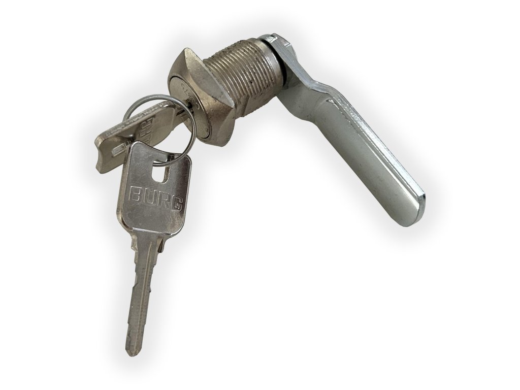 Metal wardrobe, height 1800 x width 600 x depth 500 mm. Locking with a cylinder lock with two keys or a rotary lock for a padlock. There is a bend in each section to prevent the door from being pushed into the cabinet and the lock from being pryed open. In stock in RAL 7035 light gray or body RAL 7035 light gray, door RAL 5012 blue.