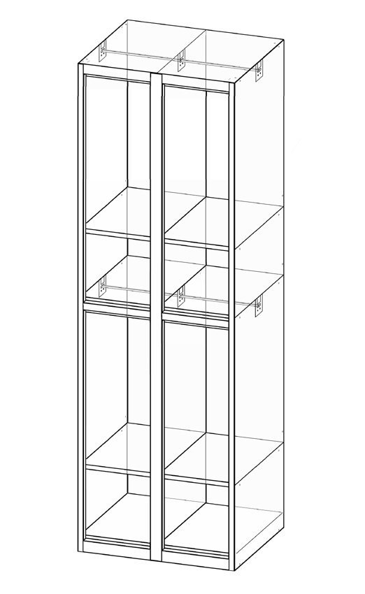 Perforation of the body - the body of the wardrobes is equipped with holes for connecting wardrobes in rows, holes for attaching plinths or sloping roofs, holes for mounting on a base, holes for insertion of dividing additional bar. |