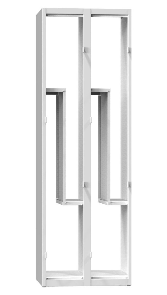 Two-door metal wardrobe divided, width 300, height 1850, depth 500 mm. Body color RAL 7035 light gray.