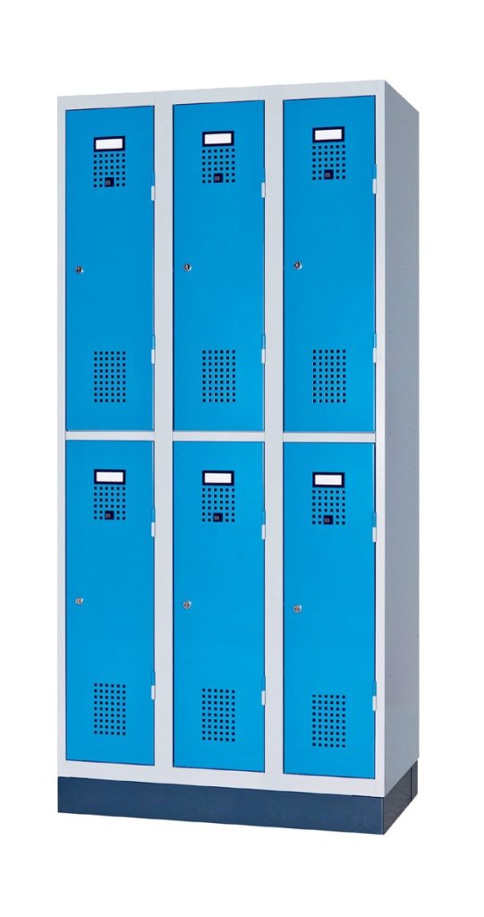 Locking - by default, the wardrobe cell is locked with a single-point bolt with a cylinder lock and two keys. It is also possible to replace the lock with a rotary lock for a padlock at no extra charge. |