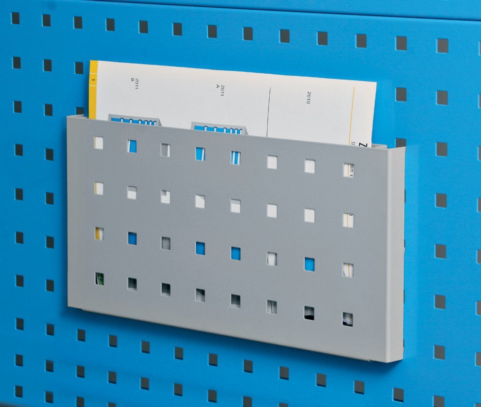 Perforated door pocket for A4 documents. Width 350 mm, weight 1.2 kg.