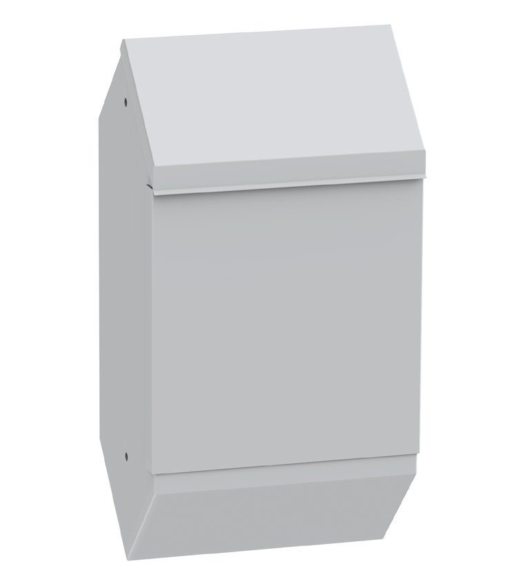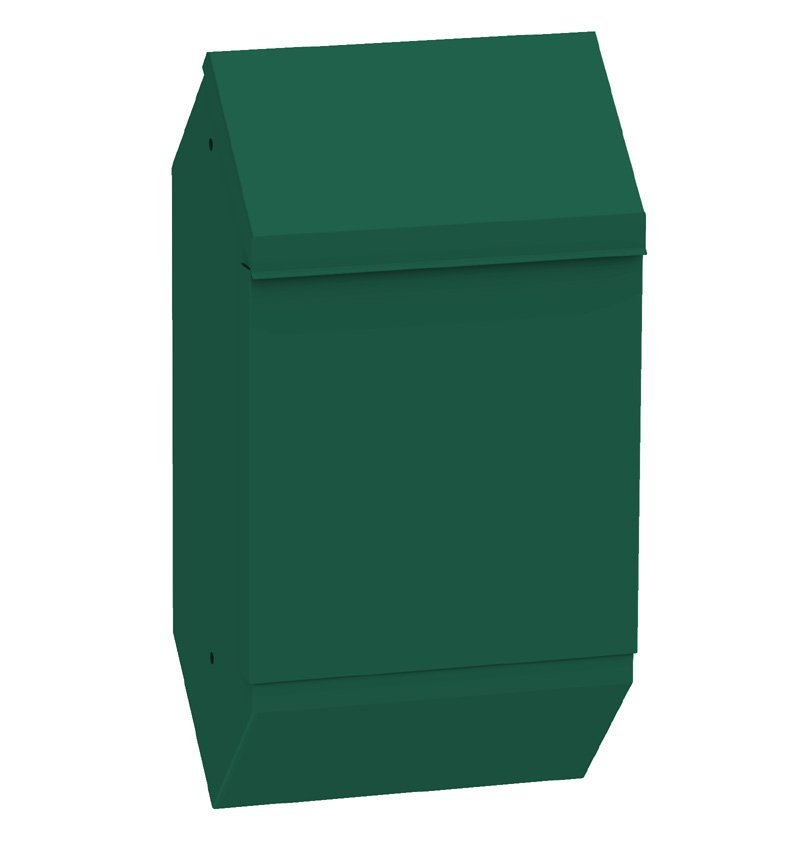 Lockable container for dog excrement bags. Galvanized with exterior powder coating. Height 510 x width 300 x depth 105 mm.