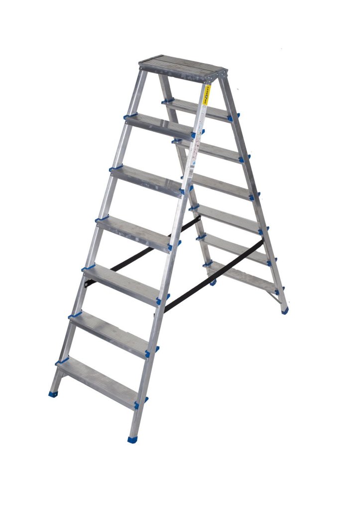 Eurostyle double-sided aluminum steps, number of treads 2x8, maximum height 1.67 m, width 533 mm. Load capacity 150 kg. Stairs 922, 923 - DELIVERY WITHIN 5 DAYS.