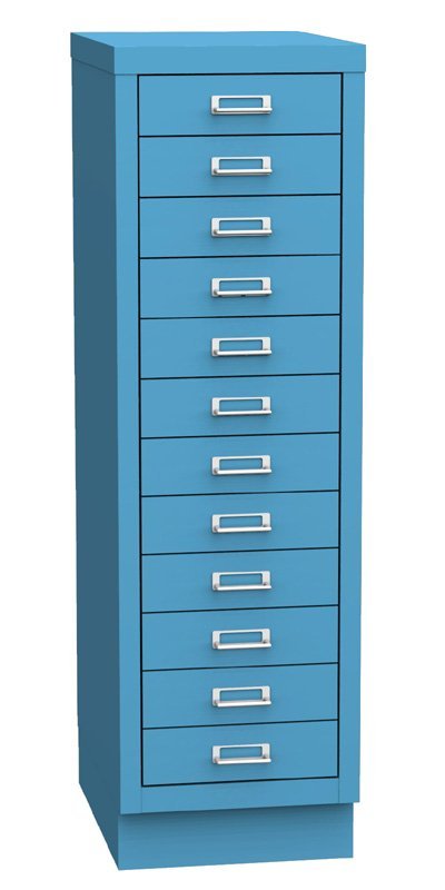 Ten-drawer metal cabinet A3, width 349, height 670, depth 432 mm. Including plinth in black or on request in the color of the cabinet.