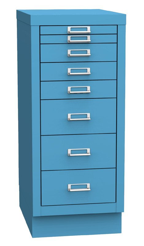 Nine-drawer metal cabinet A3, width 349, height 940, depth 432 mm. Including plinth in black or on request in the color of the cabinet.