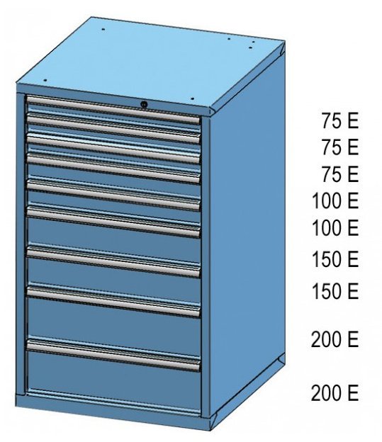 Drawer cabinet, 9x drawers, height 1215, width 731, depth 780 mm. Internal dimensions of the drawer 612 x 612 mm. full description and parameters