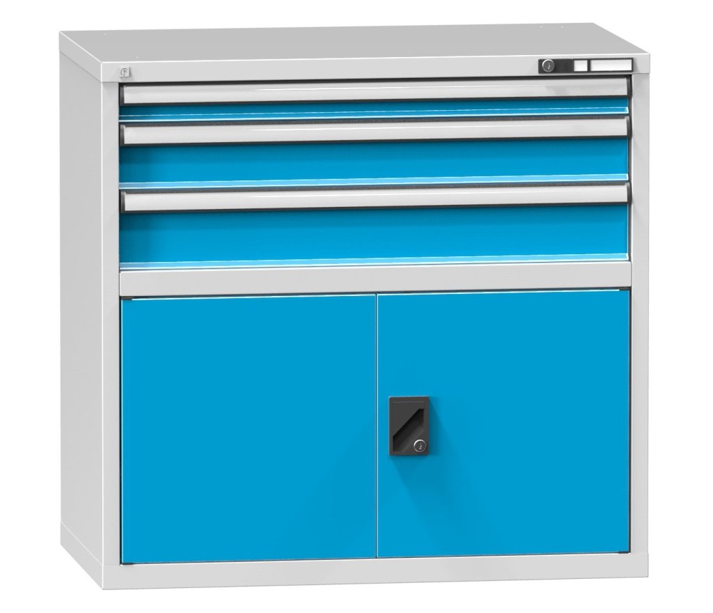 Drawer cabinet, 3x drawers, 1x door + 1x adjustable shelf, height 990, width 1037, depth 630 mm. Internal dimensions of the drawer full description and parameters
